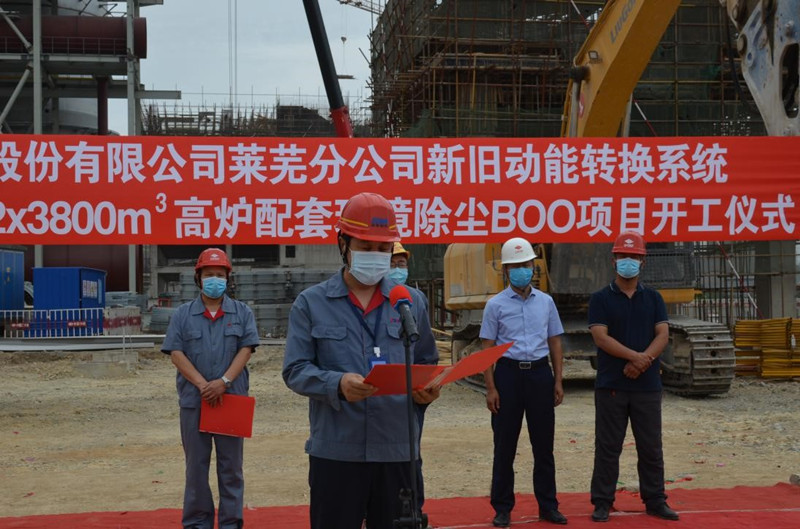 2020年6月16日,公司總承包的山鋼股份萊蕪分公司新舊動能轉(zhuǎn)換升級改造2*3800m3高爐配套環(huán)境除塵BOO項(xiàng)目舉行了開工儀式。萊蕪分公司新舊動能轉(zhuǎn)換指揮部田慶元經(jīng)理、萊蕪三控冶金建設(shè)監(jiān)理事務(wù)所沈桂聯(lián)經(jīng)理、我公司劉洪亮副總經(jīng)理及其他相關(guān)單位領(lǐng)導(dǎo)出席了開工儀式,劉洪亮副總在開工儀式上講話,九點(diǎn)五十八分田慶元經(jīng)理宣布項(xiàng)目開工。