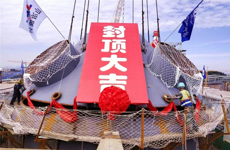 2020年8月25日,由山冶設(shè)計(jì)總承包的山鋼股份萊蕪分公司1#3800m3高爐工程舉行爐殼封頂儀式。山鋼股份萊蕪分公司新舊動(dòng)能轉(zhuǎn)換項(xiàng)目工程指揮部副總指揮李綱、副經(jīng)理田慶元,煉鐵廠經(jīng)理、高爐工程項(xiàng)目經(jīng)理部經(jīng)理張明,新舊動(dòng)能轉(zhuǎn)換項(xiàng)目工程指揮部高爐工程項(xiàng)目經(jīng)理部常務(wù)副經(jīng)理賈友劍及施工、監(jiān)理等相關(guān)單位領(lǐng)導(dǎo)出席了儀式,山東省冶金設(shè)計(jì)院股份有限公司黨委書記谷卓奇代表總承包單位發(fā)表講話。