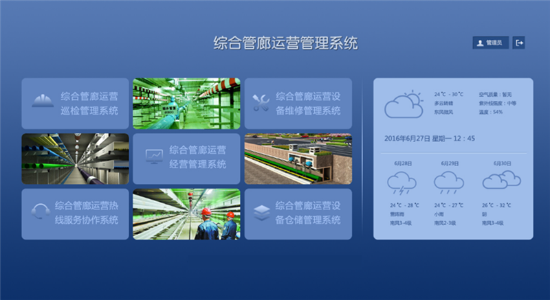 智慧管廊:以“知、控、警、決、管、營、享”為管理方針,以大數(shù)據(jù)、物聯(lián)網(wǎng)、云架構(gòu)、智能組態(tài)、綜合業(yè)務決策分析、人工智能等技術為支撐,結(jié)合城市地理信息系統(tǒng)(GIS)和建筑信息模型(BIM),通過整合各數(shù)據(jù)分析,構(gòu)建指揮統(tǒng)一、功能齊全、反應靈敏、運轉(zhuǎn)高效的管廊運行綜合管理平臺,包括1個中心、1個平臺、7個應用系統(tǒng)、N個終端,對綜合管廊內(nèi)環(huán)境、設備及運行進行實時監(jiān)控、運營管理和安全預警,提高決策指揮效率,切實提高處置突發(fā)安全事件的能力,以保障系統(tǒng)安全、高效運行。