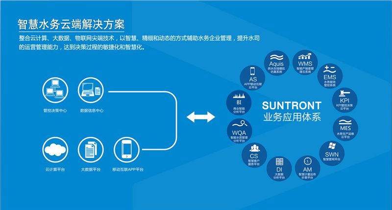 基于物聯(lián)網(wǎng)、云計算的管理平臺為各種水處理運營的安全管理、生產(chǎn)運行、水質(zhì)化驗、設備管理、日常辦公等提供統(tǒng)一業(yè)務信息管理平臺,對企業(yè)實時生產(chǎn)數(shù)據(jù)、視頻監(jiān)控數(shù)據(jù)、工藝設計、日常管理等相關數(shù)據(jù)進行集中管理、統(tǒng)計分析、數(shù)據(jù)挖掘,為不同層面的生產(chǎn)運行管理者提供即時、豐富的生產(chǎn)運行信息,為輔助分析決策奠定良好的基礎,為企業(yè)規(guī)范管理、節(jié)能降耗、減員增效和精細化管理提供強大的技術支持。